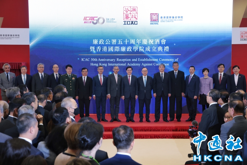 2月21日,香港廉政公署在北角廉政公署大樓舉行50周年慶祝酒會暨香港國際廉政學院成立典禮,與各界共同慶祝廉署成立50周年 ,並見證香港反貪工作邁向新里程。(香港中通社記者 謝光磊 攝) 香港中通社圖片