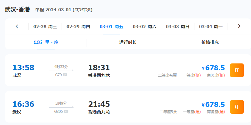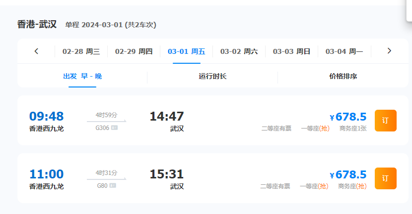 香港高鐵遊風景:陽春三月,你看那櫻花綻放的城市(附攻略)香港新聞網3月2日電 陽春三四月,櫻花開始綻放。坐上香港西九龍出發的高鐵,4-5小時後,就可以欣賞到那一大片的櫻花怒放。這次我們帶您去領略中國內地——武漢,這是一個櫻花心儀者的城市。每年武漢櫻花季都會受到全國關注,預計2024年武漢櫻花季花期會在3月中旬-4月上旬之間,這期間恰逢香港復活節,一個不短的假期,帶上好心情去看櫻花吧。以下是武漢賞櫻踏青線路攻略—— 香港往返武漢一天有兩趟班次的車,可以隨心自由選擇,票價也不貴,一等價位1082.5元人民幣,二等票價位678.5元人民幣。可以選擇早上出發或中午出發,4個半小時後就到達武漢。