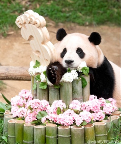福寶三歲生日照片。圖源:愛寶樂園FACEBOOK相片。 除愛寶樂園外,單以中國四川成都大熊貓繁育研究基地為例,今年農曆新年因以大熊貓作招攬,而成為中國十大熱門旅遊城市之一。基地由農曆年初一至年初三,僅三天時間門票收益就逾230萬元人民幣(約32萬美元)。 而目前“全球人氣大熊貓排行榜”位居榜首的“新晉頂流”和花,就是來自成都大熊貓繁育研究基地,和花短胖炸毛、行動緩慢、不擅長爬樹,但卻憑借著極高的辨識度和溫順的好脾氣“出圈”。牠與飼養員譚爺爺的日常有愛互動也被網友笑稱為“譚棉花”組合,在2023年成都大運會期間擔當形象大使,“譚棉花”組合日常互動更被製作成動畫一起宣傳成都。據悉和花父親是出生於美國的大熊貓美蘭,哥哥是《功夫熊貓》阿寶原型功仔。這隻大熊貓界的“名門閨秀”僅在微博超話便有超過60萬“護花使者”,海外網友也毫不掩飾對她的喜愛“她融化了我的心”“她是國際超級明星”。