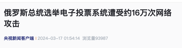 俄總統選舉電子投票系統遭約16萬次網絡攻擊分享到: