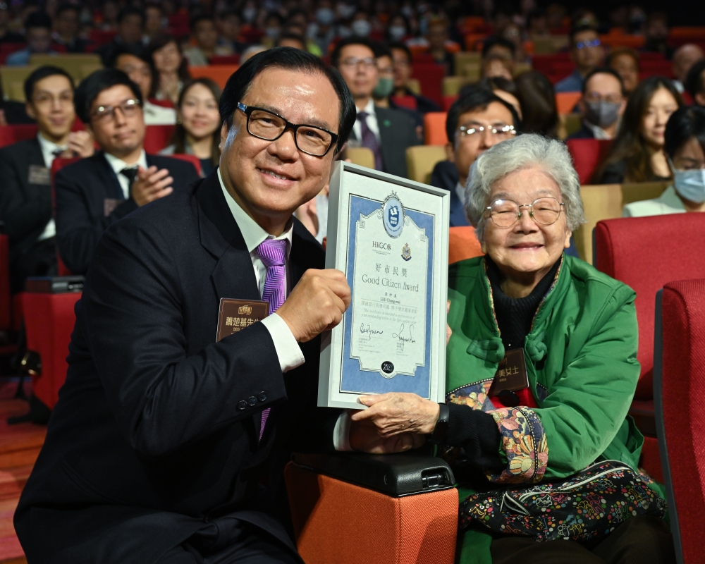 圖源:政府新聞處。 警務處處長蕭澤頤在典禮上致辭時表示,“好市民獎勵計劃”成立至今51年,不單彰顯警民合作的重要性,亦見證警隊致力推動社群參與和加強聯繫不同社區群組的初心。他指計劃得以成功舉辦至今,有賴香港總商會、撲滅罪行委員會和各界持份者的支持。 蕭澤頤特別提到今屆有11位任職保安員和的士司機的得獎者,善用他們工作上的優勢,發揮積極機警的特質,主動多走一步協助警方撲滅罪案,非常值得表揚,呼籲市民效法,共同為社會編織一個更強大的安全網。他又提醒市民在遇到可疑來電或銀行帳戶時需提高警覺,並且認識如何正確使用“防騙視伏App”去拆穿騙徒的陷阱,與警方一同打擊騙案,見疑即報。 另一主禮嘉賓,香港總商會常務副主席陳瑞娟表示,對“好市民獎”得獎者見義勇為的精神感到驕傲,當中包括成功阻止騙案、讓受害人免受更大損失的銀行職員。她指商界將繼續與警方和各持份者推動防罪滅罪工作,使香港成為市民安居樂業的地方。撲滅罪行委員會委員蕭楚基則表示,委員會致力協助政府及警隊進行防罪滅罪工作,又讚揚今屆最年長的獲獎者非常機警,成功協助警方打擊騙案,是市民大眾的模範。