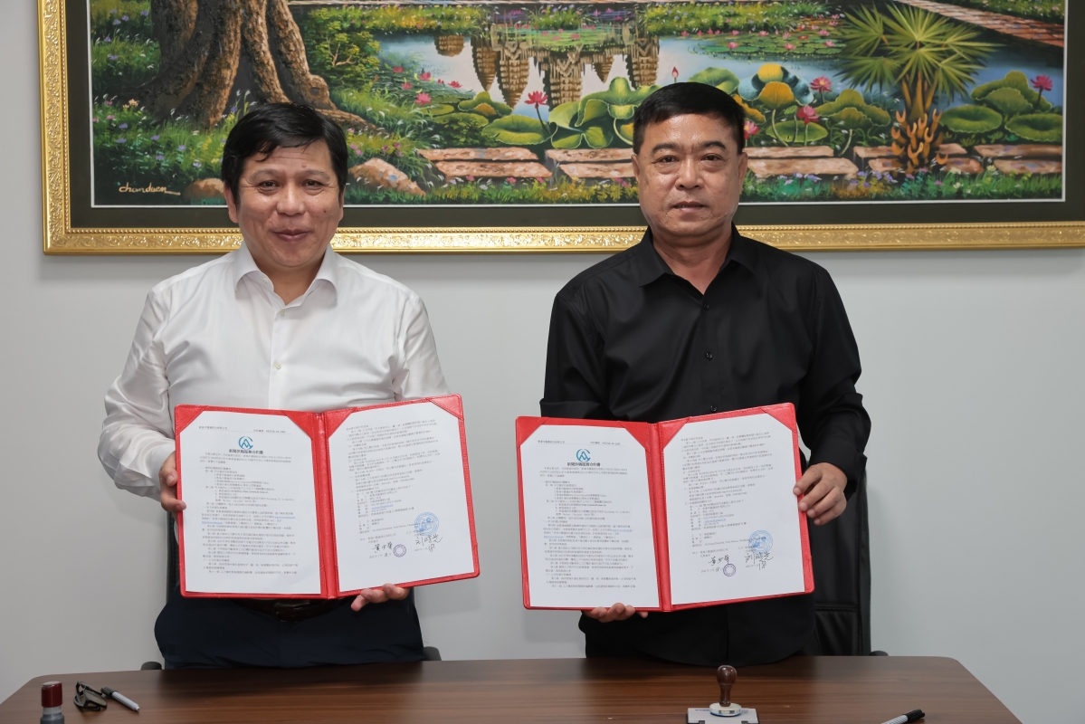圖為香港中通社與東盟通訊社簽署供稿服務合約,東盟通訊社簽約代表為東盟通訊社社長、柬中記協聯合主席劉曉光(右)。