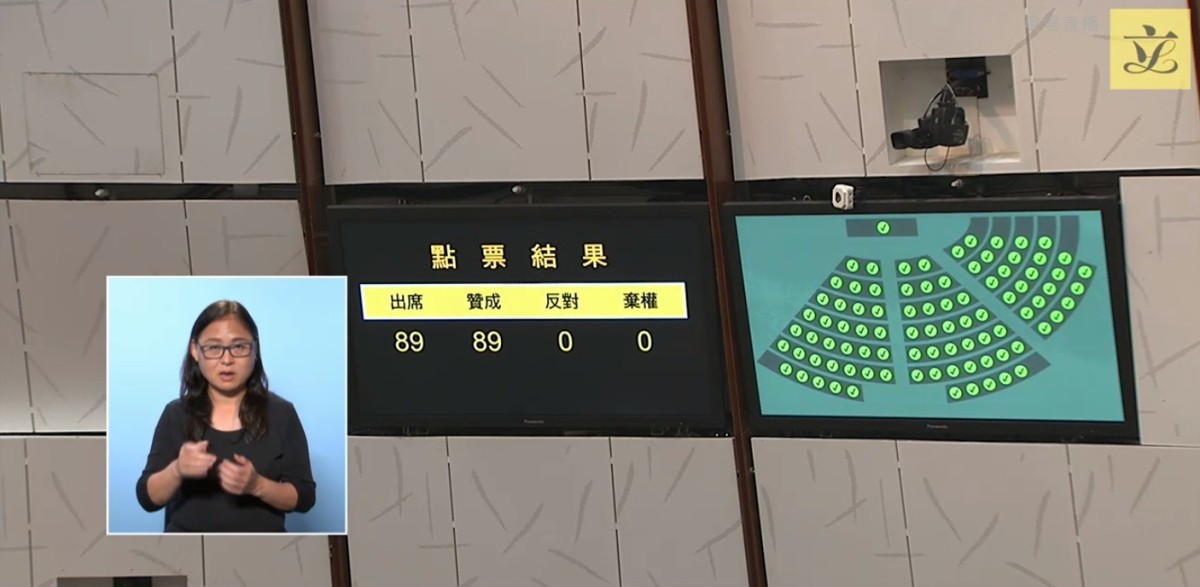 審議過程全城關注。當天清晨8時,記者已經在現場準備直播,半小時後,議員陸續走向會議廳,胸前別著國旗、區旗襟章,精神抖擻。立法會會議廳公眾席上,坐滿了市民,戴上耳機認真旁聽。 下午約5時,經歷白天的審議,議員走出廳外裝一杯水,匆匆喝完又回到席位。儘管會議從早晨持續至傍晚,但議員精神仍高度集中,逐條就修正案詳細認真發表見解。 在高效高質的一整天審議後,草案進入三讀程序。多名議員加快語速,聲音甚至有些顫抖,表示很榮幸參與了這值得銘記的一天。鄧炳強形容“親生仔出世”,議會廳出現了輕鬆一笑。