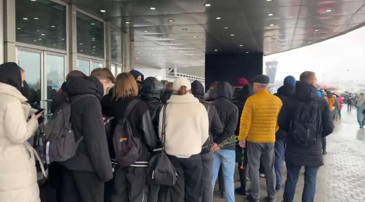 悼念現場排起的長隊。受訪者供圖 時隔兩日後再次回到恐襲現場,陳一鳴感受頗多,“來到這裡,一方面是緬懷在恐襲事件中逝去的人們,另一方面也是心有餘悸,想來平複一下心情。”他說,發自內心地覺得自己真的很幸運。 除了恐怖襲擊現場,昨天,俄羅斯多地都舉行了悼念活動。當地民眾街頭獻花,自發哀悼莫斯科近郊恐襲事件遇難者,街頭的廣告牌也播出了蠟燭圖案。