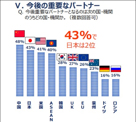 根據這份最新報告的內容,中國在東南亞的經濟影響力和政治戰略影響力仍遙遙領先於其他國家。今年有59.5%的受訪者認為中國對東南亞經濟影響力最大,43.9%認為中國的政治與戰略影響力最大。認為美國在東南亞的經濟以及政治與戰略影響力最大的受訪者占比分別為14.3%和25.8%。 在東盟的11個對話夥伴中,就與東盟的戰略相關性而言,中國高居榜首,在滿分11分的平均得分為8.98分,被視作東盟最具戰略意義的合作夥伴。其次是美國(8.79分)和日本(7.48分)。(東盟11個對話夥伴分別為中國、美國、日本、歐盟、韓國、英國、澳大利亞、俄羅斯、印度、加拿大、新西蘭) 報告指出,來自文萊、柬埔寨、印度尼西亞、老撾、馬來西亞、新加坡和泰國的受訪者對中國表示了強烈支持。菲律賓受訪者則將中國排在了第四名,與緬甸、越南將美國列為首選。