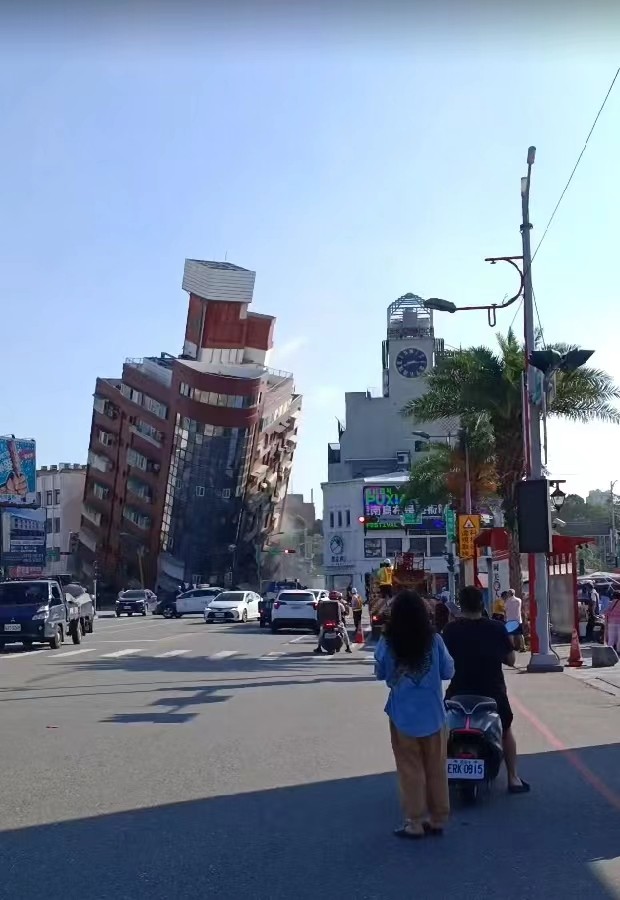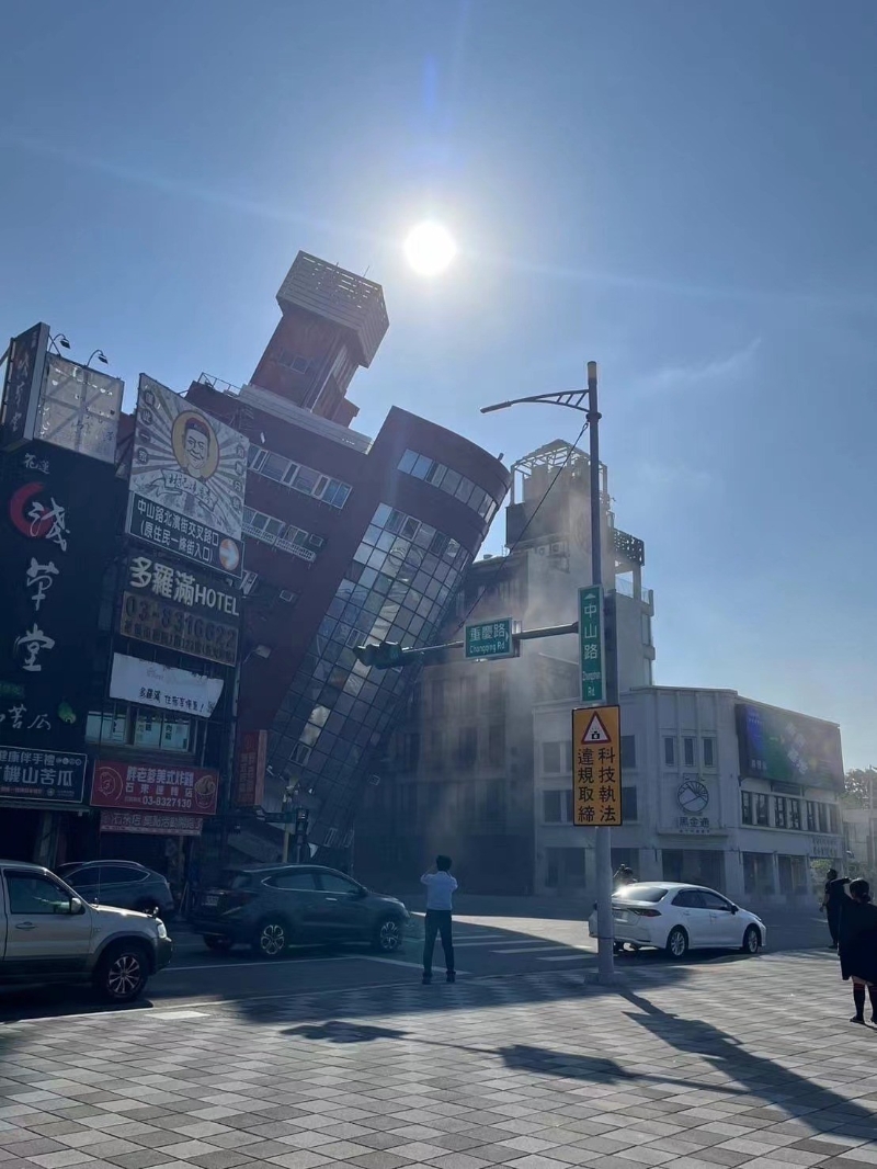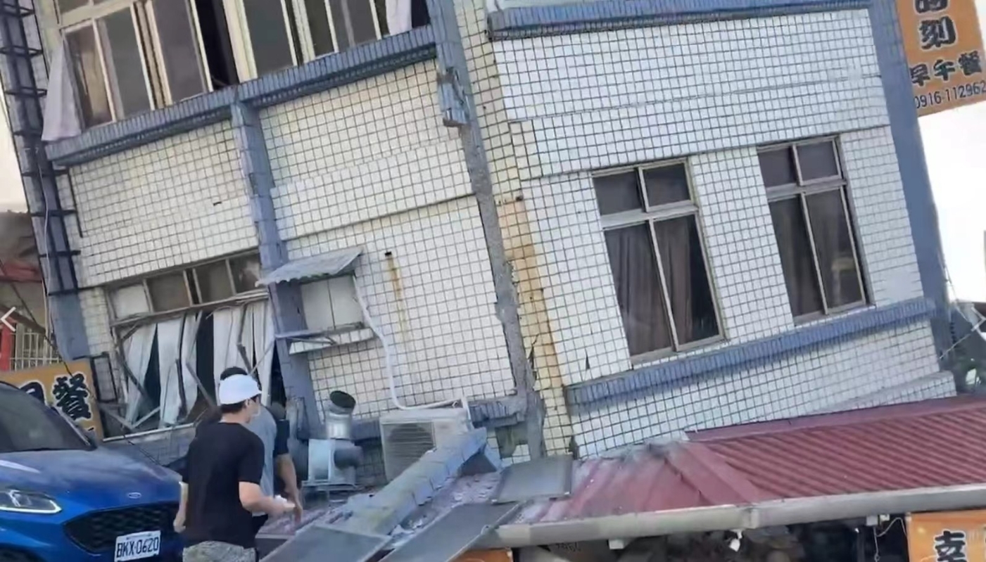 台灣花蓮一棟9層公寓樓發生傾斜,有民眾被困。