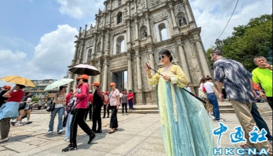 2023年10月1日,旅客在澳門大三巴牌坊前。香港中通社圖片 文綺華指出,剛結束的復活節假期(3月29日至4月1日),旅客人數及酒店入住率符合澳門當局預期,4日共錄得40.6萬人次旅客,按年增長19.7%,國際遊客日均達到7200人次,按年升幅達八成,酒店入住率達到88%。 中國國務院早前批准增加陝西省西安市、山東省青島市為內地赴港澳“個人遊”城市。文綺華表示,今年2月,西安及青島分別有3.6萬及1.8萬旅客來澳,較2019年上升14%及40%;相信在宣傳下,旅客數字會持續上升。(完) 【編輯:馬華】