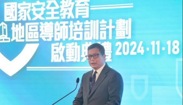 (香港中通社記者 謝光磊 攝) 香港中通社圖片 鄧炳強指出,希望2025年前培訓約2600位社區導師,協助在社區推廣國安教育活動。他預期,每位導師可再培訓30個人,屆時就有逾7萬人有機會接觸到國家安全意識,這是接下來的工作重點。(完) 【編輯:纪东】