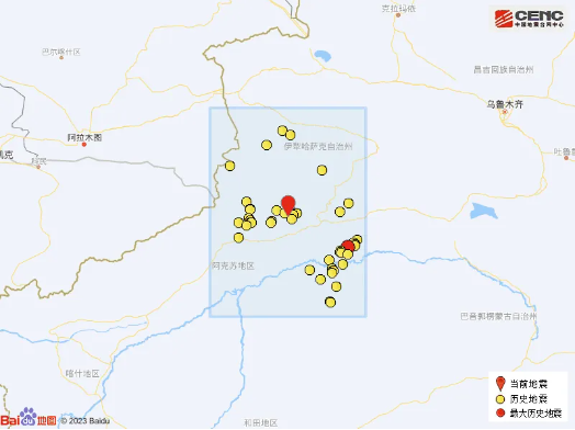 歷史地震:根據中國地震台網速報目錄,震中周邊200公里內近5年來發生3級以上地震共326次,最大地震是2020年1月16日在新疆阿克蘇地區庫車縣發生的5.6級地震(距離本次震中151公里),按震級大小前50次歷史地震分布如圖。(完)