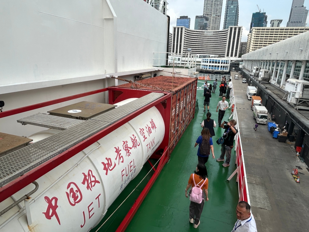 香港中通社圖片。 其後,“雪龍2”號停泊尖沙咀海運碼頭,中國第40次南極考察隊領隊兼首席科學家張北辰、“雪龍2”號船長肖志民及其他頂尖科學家和船員登岸。 當天下午,記者登船參觀所見,破冰船共五層,從無人機、直升機等設備,採樣室、實驗室等作業場所,到健身房、學術廳等生活設施,一應俱全。 參觀過程中,船身不曾搖晃,十分穩定。據介紹,“雪龍2”號船體強度達到PC3級,雙向破冰均具有以2至3節船速連續破1.5米冰加0.2米積雪的能力。