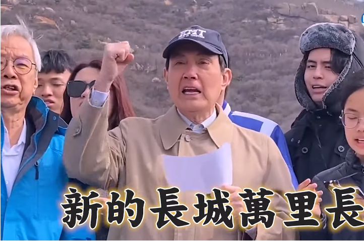 香港新聞網4月9日電 台灣當局前領導人馬英九9日上午登上八達嶺長城,並率師生在長城上高唱抗戰歌曲《長城謠》,過程中一度哽咽、頻頻拭淚。 馬英九走訪的是八達嶺長城北一樓和北二樓等處。由於長城部分路段陡峭,且當天八達嶺戶外溫度只有9度,風有些大,已73歲的馬英九穿上卡其色風衣,頭戴棒球帽,扶著欄桿前行。途中遇到一些遊客,馬英九高興地說“大家好!”遊客回說“兩岸一家親!” 在長城上,馬英九從口袋掏出一紙歌詞,率領師生高唱抗戰歌曲《長城謠》。當唱到“長城外面是故鄉”時,馬英九情緒激動紅了眼眶,頻頻用手帕擦拭眼淚;唱到最後高音部分,“四萬萬同胞心一樣,新的長城萬里長”,馬英九舉臂握拳,神情堅毅。