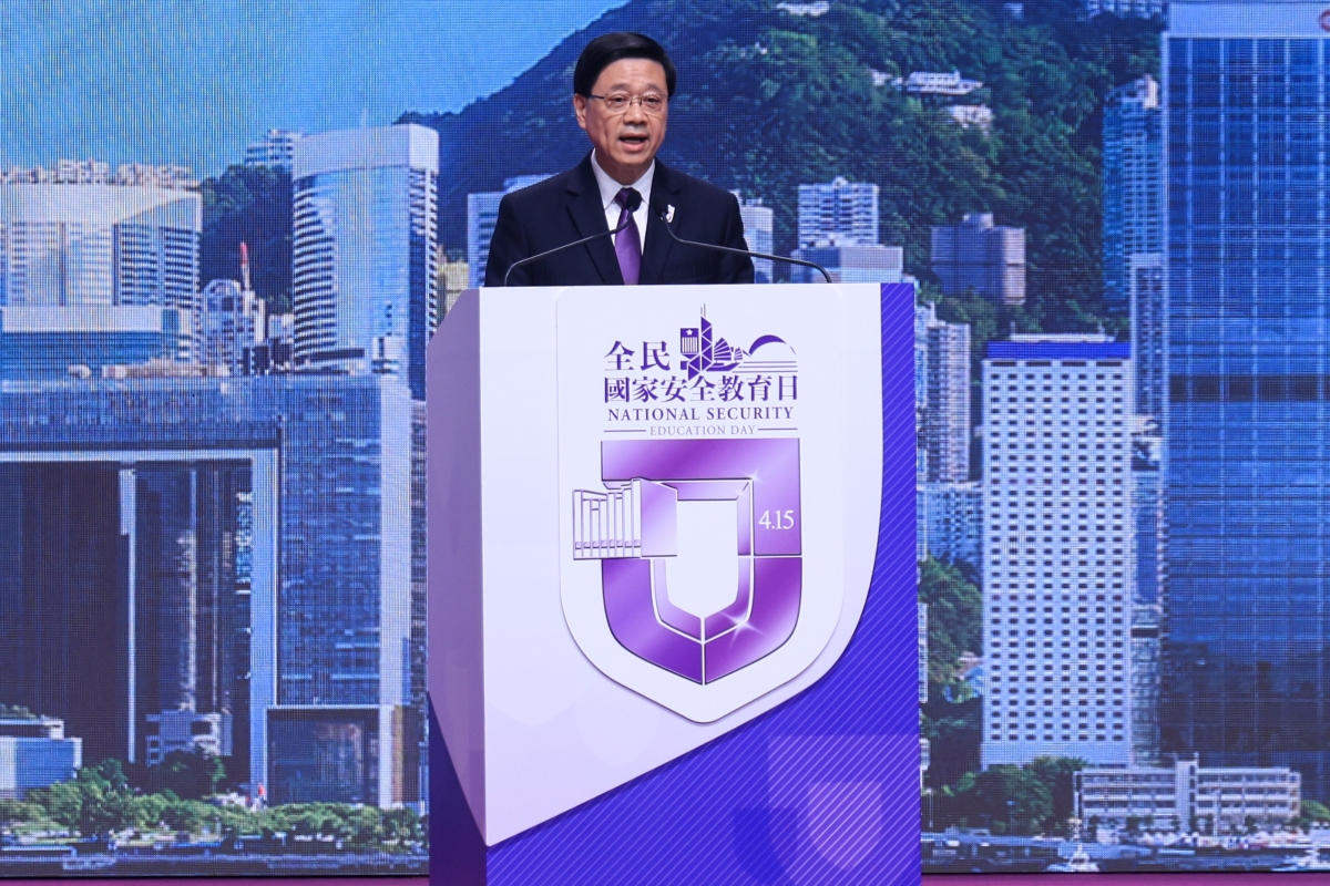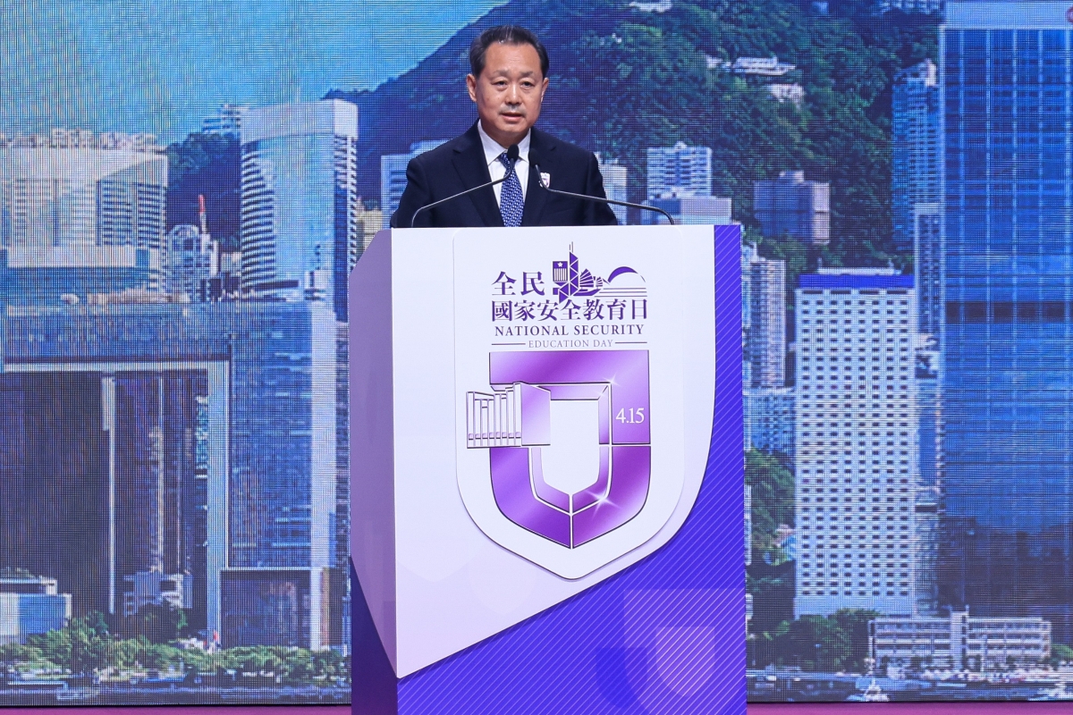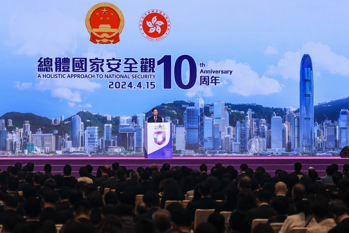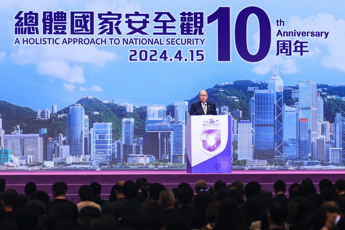 香港新聞網4月15日電(記者 許其皓)4月15日上午, “全民國家安全教育日”開幕典禮暨主題講座在香港會議展覽中心大會堂舉行。“全民國家安全教育日”由香港特別行政區維護國家安全委員會主辦,主題為“總體國家安全觀10周年”,以提高全港市民維護國家安全的意識和責任感。