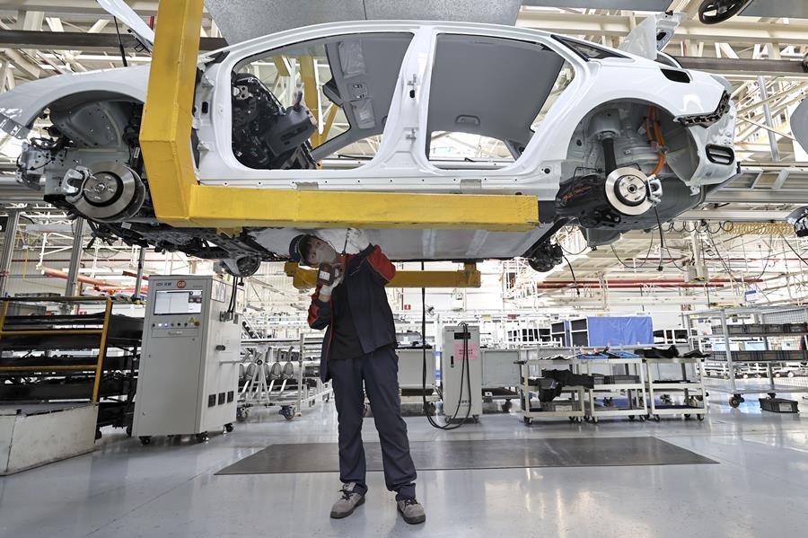 資料圖為山西晉中,工人在生產汽車。 香港中通社圖片 會上透露,初步核算,一季度國內生產總值296299億元(人民幣,下同),按不變價格計算,同比增長5.3%,比上年四季度環比增長1.6%。 分產業看:第一產業增加值11538億元,同比增長3.3%;第二產業增加值109846億元,增長6.0%;第三產業增加值174915億元,增長5.0%。(完) 【編輯:丘志彬】