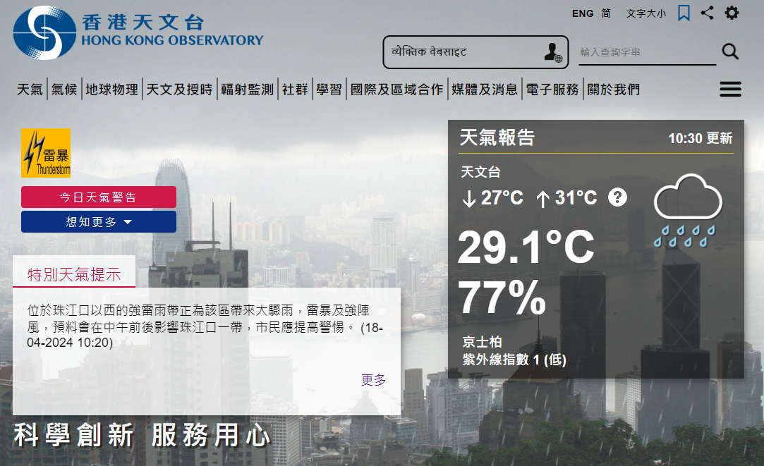香港天文台雷暴警告現正生效 提醒市民提高警惕分享到: