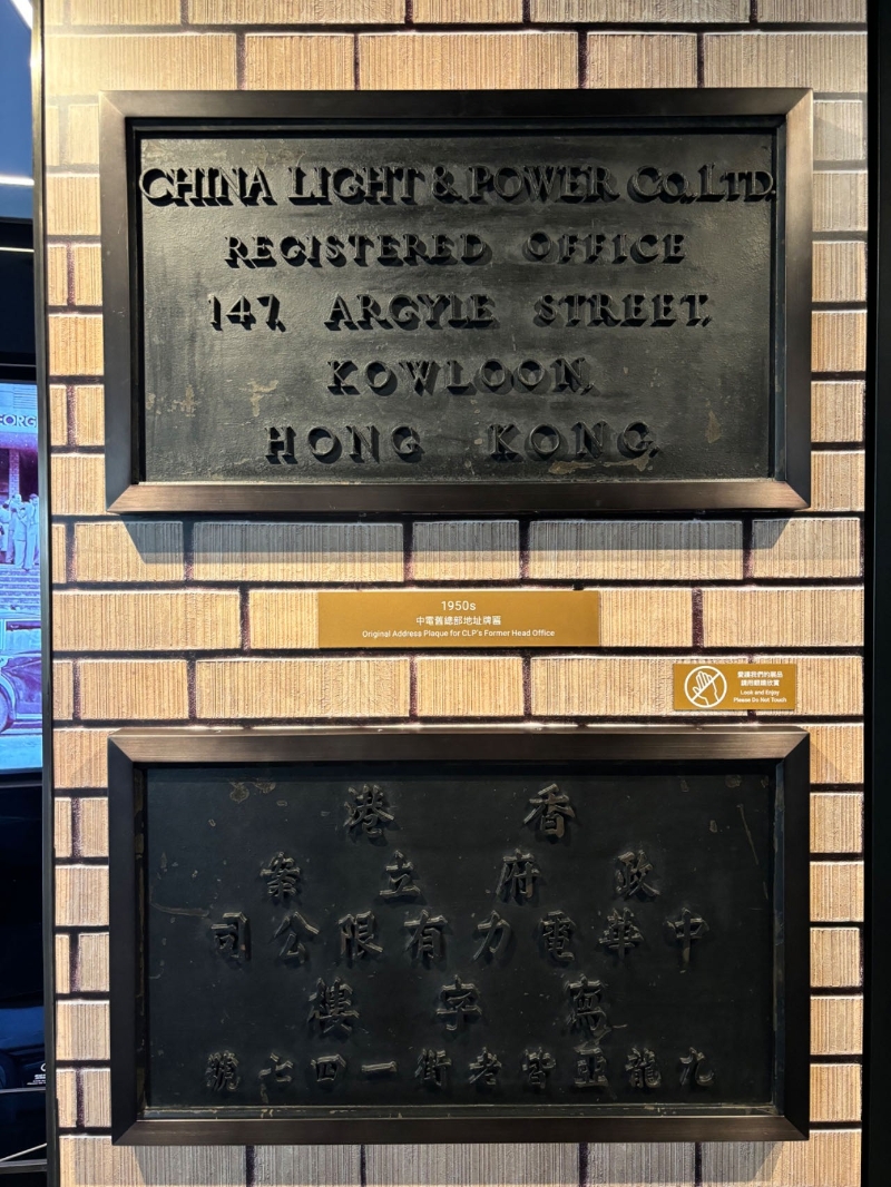 1950年代,中電舊總部地址牌匾。(香港中通社記者 黃璇攝)