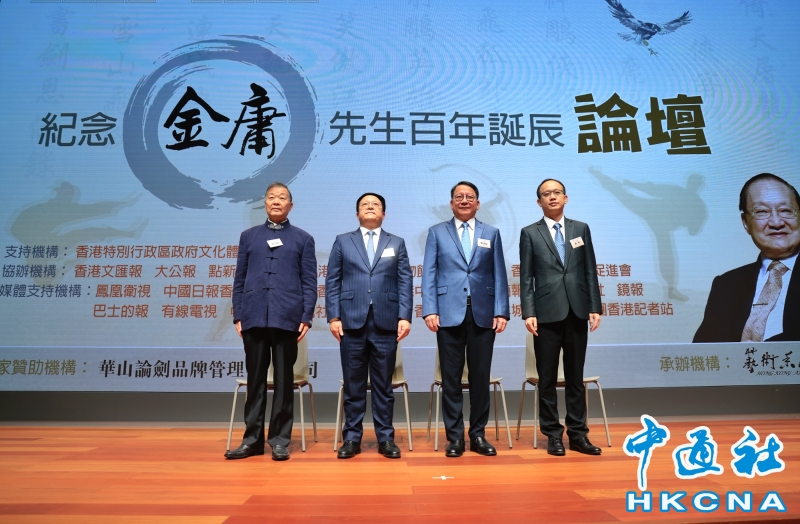 香港中通社4月28日電(記者 徐嘉儀)為紀念已故武俠小說泰斗金庸(本名查良鏞)誕辰100周年,由香港新聞工作者聯會主辦的“俠之大者 為國為民”紀念金庸百年誕辰論壇28日在香港故宮文化博物館舉行。