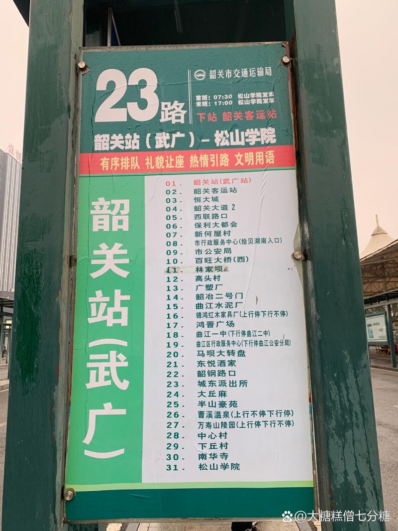 南華寺 南華寺距今已近一千五百年的歷史,寺後有桌錫泉(俗稱九龍泉),幾株高達數十米的古老水鬆,是世界上稀有的樹木,寺廟現存大量珍貴文物。 南華寺建築面積一萬二千多平方米,由曹溪門、放生池、寶林門、天王殿、大雄寶殿、藏經閣、靈照塔、六祖殿等建築群組成。 南華寺是寫下千古絕句“菩提本無樹,明鏡亦非台,本來無一物,何處惹塵埃”的佛教禪宗六祖惠能弘揚“南宗禪法”的發祥地,六祖惠能在此傳授佛法37年,法眼宗遠傳世界各地,因而南華寺有“祖庭”之稱。 交通:高鐵到韶關站(注意⚠️是高鐵站,不是韶關東) 1.公交車23路,見圖4線路,單程3元,百度地圖顯示耗時1小時15分鐘