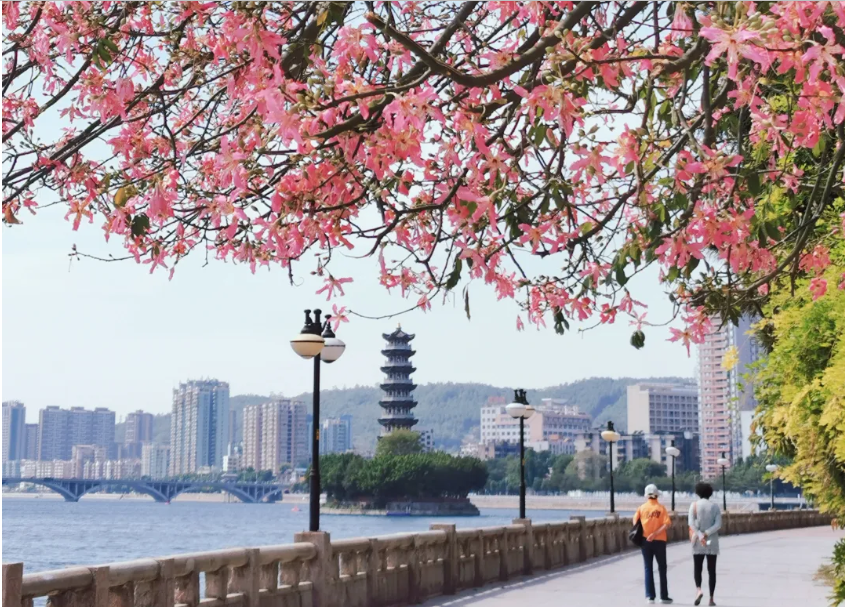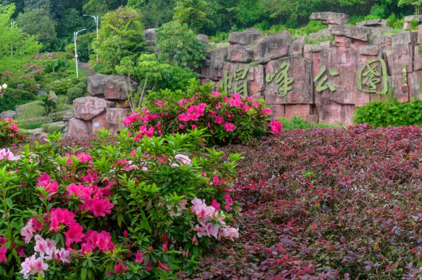 走在河畔的環島綠道,呼吸著被風吹來的淡淡花香,耳邊的髮絲飛舞著,看著搖曳的紫色藤蔓,似乎走進了一個隔絕煩惱的世外桃源。從環園路到西堤路的方向,沿著河邊一直走,就能到帽峰公園了! 帽峰公園可是個賞花聖地,走在山間小道,一路繁花相伴,美不勝收。