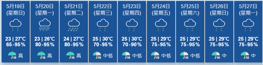 香港新聞網5月19日電康樂及文化事務署今日10時06分緊急宣布,由於大浪關係, 港島西貢數個泳灘懸掛紅旗。另據天文台消息,香港明日(周一)雨勢有時頗大及有幾陣狂風雷暴。