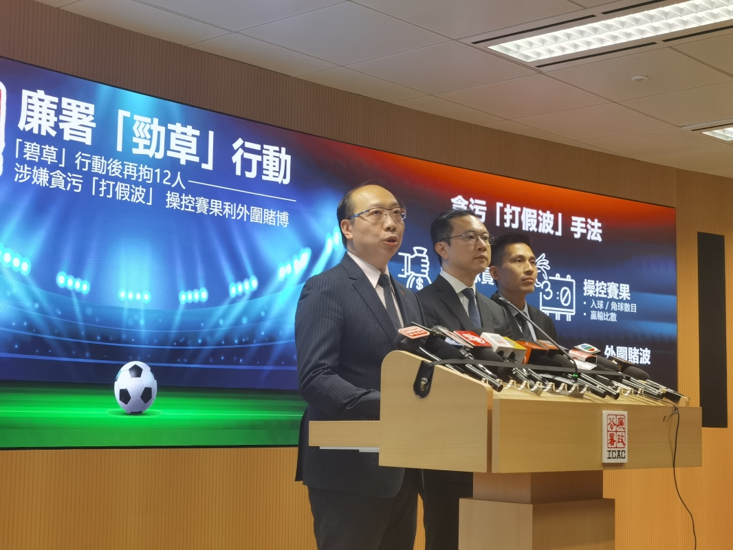 香港新聞網5月29日電 (記者 譚暢)香港廉政公署29日召開記者會,公佈打擊假球“勁草”行動,拘捕12人。這是繼去年“碧草”行動後,廉政公署再有大型打擊假球行動。