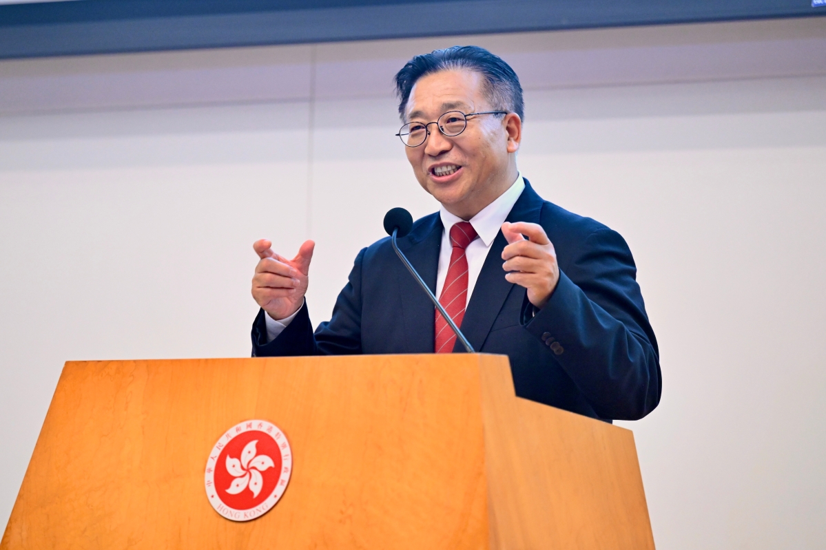 崔建春主講。政府新聞處圖片 李家超在報告會上致開場發言。他感謝崔建春特派員出席報告會,分析複雜嚴峻的國際政經形勢和國家的外交策略,讓特區政府能更好地配合國家應對國際競爭環境,同時貢獻國家高質量發展。 李家超指出,日益緊張的地緣政治局勢對全球經濟和國際貿易都帶來影響。香港是一個外向型經濟體,在“一國兩制”下擁有“背靠祖國、聯通世界”的獨特優勢,不斷發揮“超級聯繫人”和“超級增值人”的角色,持續鞏固提升香港國際金融、航運、貿易中心等地位。他期望特區政府官員通過這次報告會增進對當前的國際政治和經濟環境的掌握,有利於制訂和執行各相關政策,為香港保持國際化優勢,不斷拓展國際聯繫,擴大與其他國家的合作,進一步為提升香港的國際競爭力作出貢獻。 公務員事務局局長楊何蓓茵在報告會上表示,特區公務員必須準確了解國家當前的發展形勢和未來的發展方向,堅定不移貫徹“一國兩制”方針,配合特區政府全面落實“愛國者治港”原則。公務員學院會持續加強培訓,提升公務員的愛國精神、大局觀和國際視野,更好地裝備公務員團隊配合政府發揮香港聯通國家與世界的橋樑角色,向世界說好國家和香港成功實踐“一國兩制”的故事。