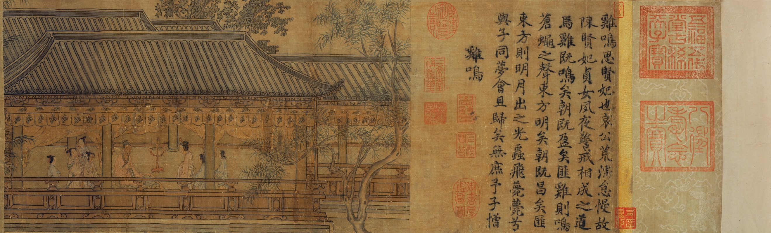 政府新聞處圖片 香港藝術館虛白齋藏品《齊風六篇》水墨絹本手卷,是據南宋畫家馬和之所繪的《詩經圖》,以詩配圖的形式,傳達道德價值,甚具深意。手卷一直藏於皇宮中,至清末由末代皇帝溥儀及其弟溥傑運出紫禁城,是當時從宮中運出的一千多件書畫名蹟之一。手卷經歷清朝滅亡及二次大戰,輾轉由香港書畫鑑藏家、虛白齋主人劉作籌覓得。劉氏最後決定以取諸香港、用諸香港的心意,以化私為公的精神,於一九八九年將連同《齊風六篇》在內的數百件珍藏慷慨捐贈給香港藝術館。