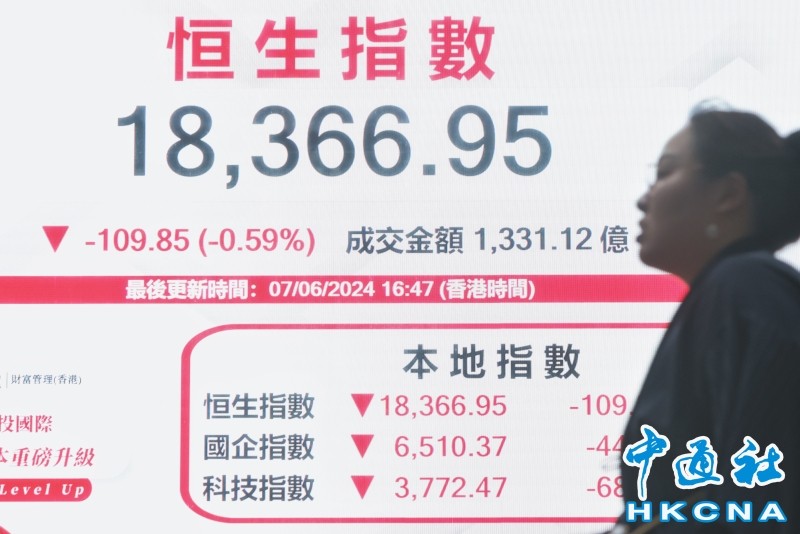 香港中通社6月7日電(記者譚暢)市場觀望美國非農及失業率數據,港股7日先升後跌。恒指7日收市報18366點,跌109點或0.6%。大市全日成交1331.12億港元。繼連跌兩周後,恒指本周反彈287點或1.6%。