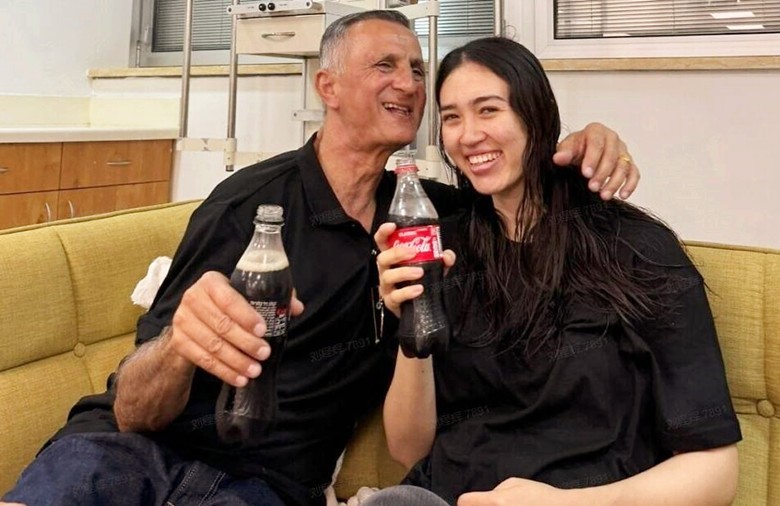 獲救後的諾亞·阿加瑪尼與父親喝可樂。以色列時報圖 據《以色列時報》報道,這四名人員自去年10月7日以來一直遭扣押,他們分別是25歲的諾亞·阿加瑪尼(Noa Argamani)、21歲的阿爾莫格·梅厄·揚(Almog Meir Jan)、27歲的安德烈·科茲洛夫(Andrey Kozlov)和40歲的什洛米·齊夫(Shlomi Ziv)。以色列方面稱,四人獲救後身體狀況良好,已轉入醫院做進一步體檢。