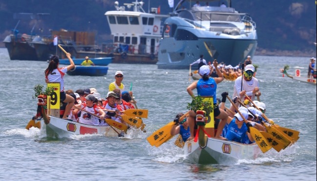 6月10日是端午節,香港多區設有龍舟比賽,赤柱舉辦的“國際龍舟錦標賽” 10日上午拉開帷幕,參賽人數最多,約有190個隊伍、約3800人參加,設有公開組、混合組、女子組等組別,現場氣氛熱烈,龍頭擊鼓聲此起彼落。(香港中通社記者 謝光磊 攝) 香港中通社圖片 賽事吸引了不同國籍的選手,他們在各異的語言、歡呼和尖叫聲中,齊心協力揮動船槳。“這不僅是一場身體和精神的雙重挑戰,也是團隊協作的最佳體現。”加拿大的參賽選手Alex向中通社記者表示,首次參與賽龍舟,使他感到這不但是運動項目,也是精神力量的象徵。團隊裡的人都為同一個目標奮鬥,是他很珍貴的瞬間。 而澳大利亞的Freddie因為種愛中華文化,特意做了功課:“我從朋友那裡得知端午節是為了紀念中國古代詩人屈原,他的忠誠和愛國在這裡很受尊重。我認為這是一個很有意義的節日,表明中華文化對忠誠、勇氣和榮譽的讚揚。”同樣來自澳大利亞的Stella則表示來香港前並不了解端午節,認為覺得這是一次學習體驗中華文化的機會。 本次賽事更吸引當地居民與內地旅客觀賽。元朗市民曾女士表示,比賽非常激烈,也有很多反轉情況出現。她認為賽龍舟不但是傳統,也是社區精神的象徵。看到這麼多世界各地的朋友們參與其中,感到自豪。 來自杭州的沈小姐攜父母一同前來赤柱,感受香港端午的節日氛圍。雖然家鄉也有端午賽龍舟的習俗,但香港這邊更為國際化,在海上賽龍舟的視野也更為開闊,節日氣氛很濃郁。 現場人群擁擠、天氣炎熱,不少市民進入赤柱泳灘戲水、拍照留念。赤柱龍舟賽本次還新增大學隊,包括城大、理大等隊伍。城大參賽學生馬同學表示,龍舟集訓的過程都很辛苦,要在烈日下划槳九公里也是很困難的事情。但他們仍在盡力去完成每一個“轉肩、落腰、撐腳”,落實每一個“扎實點”,永不言棄。 據悉,赤柱國際龍舟錦標賽有約5000名中外參賽選手,要在54場初賽、複賽及決賽中突出重圍,方可奪得桂冠。賽道全長270米,較短的里程令比賽現場更為刺激,難以預料,有著極高的挑戰性。端午賽龍舟的成功舉辦,再次顯示了香港作為國際大都市的獨特魅力與熱情開放的城市風情。(完) 【編輯:纪东】