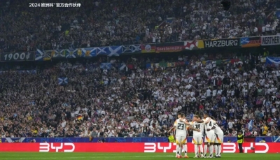 歐盟要給中國電動車加稅 比亞迪廣告卻“刷屏”歐洲盃香港中通社6月17日電(香港中通社記者 吳一帆)“足球皇帝”貝肯鮑爾曾說:在綠茵場上滾動的不是足球,而是黃金。近日,在歐盟傳出將對中國電動車徵收高額關稅消息之際,2024年歐洲盃賽場直播畫面上顯眼的中企廣告牌,顯得格外讓人玩味。