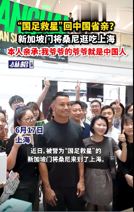 (視頻截圖) 6月16日,被譽為“國足救星”的新加坡門將桑尼及妻女抵達上海。17日下午,他出現在上海來福士廣場商務樓,接受記者的採訪。“這是我第二次來上海,上一次還是在2003年,距離現在有21年了。”逛過了南京路步行街,也看過了外灘的萬國建築群,桑尼說,自己真的很喜歡這座城市。 桑尼本人在新加坡開了一家椰漿飯店,在中國男足出線後,許多中國球迷通過二維碼掃碼打賞桑尼,還有球迷去門店就餐打卡。他也因未能在店裡為中國球迷服務而道歉。道歉之餘,桑尼向中國游客發出新加坡旅游邀約,並推薦了更多新加坡美食。 桑尼表示:“我父親的祖父是中國人,所以我也有華人血統,也懂一點中文。事實上,我父親的長相更像中國人,我祖母也是。” 6月11日晚,桑尼11次撲救將中國隊“抬進”18強後,不少中國球迷去他和家人經營的餐廳打卡、用餐。數據顯示,6月12日當天約2成游客落地新加坡後,直奔桑尼的餐廳。(完) 【編輯:李彥洲】
