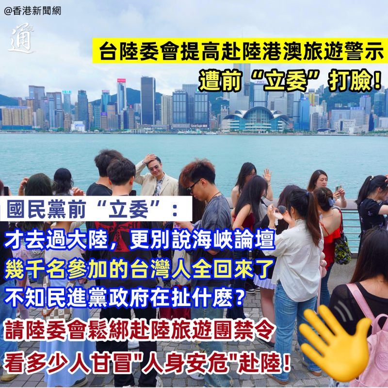 台陸委會提高赴陸港澳旅遊警示,遭前“立委”打臉!香港新聞網6月28日電 台灣陸委會昨日(27日)召開記者會,宣布6月27日起將赴大陸以及港澳旅遊警示信號燈升至“橙色”的“避免非必要旅行”,作為對大陸祭出“懲獨22條”的回應。此舉引發部分台灣民眾不滿, 中國國民黨前“立委”陳學聖不僅分享自身經歷,確認赴陸安全,又喊話陸委會鬆綁赴陸旅遊團禁令,相信有不少台灣民眾會甘冒所謂“人身安危”前往大陸。 陸委會副主委梁文傑27日在例行記者會上表示,近期大陸發布“關於依法懲治‘台獨’頑固分子分裂國家、煽動分裂國家犯罪的意見”,台灣當局認為有必要自27日起提升赴陸港澳旅遊警示為“橙色”,建議台灣民眾非必要宜避免進入陸港澳。