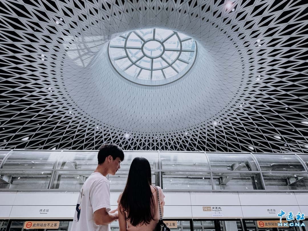 香港新聞網7月1日電(記者徐文峰)有"深圳之眼"之稱的深圳崗廈北地鐵樞紐,被譽為深圳最美地鐵站,極具未來感的大穹頂,在設計上採用了費馬螺旋、無數極具科技感的線條從四面匯聚於"深圳之眼",給人帶來強烈的視覺衝擊感,不但吸引深圳市民,更有不少香港人慕名前往打卡。
