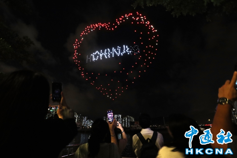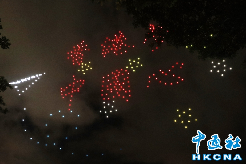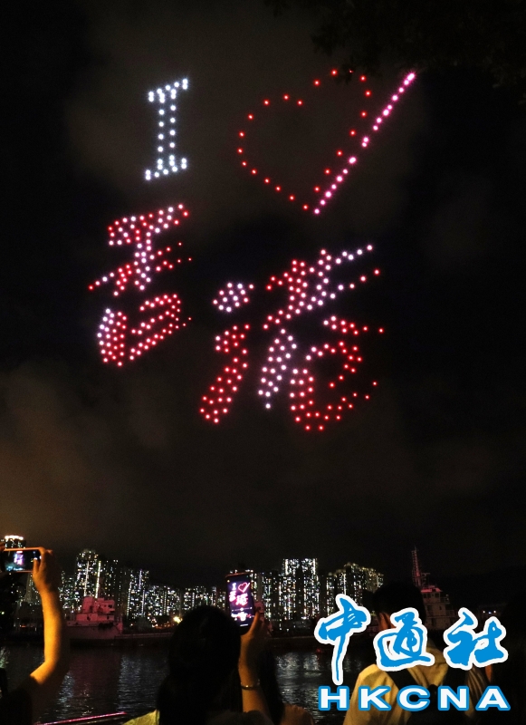7月1日,為慶祝香港回歸祖國27周年,荃灣各界合辦無人機表演,有超過350架無人機在夜空上展出不同圖案,吸引眾多市民欣賞。 香港中通社圖片 海關關長何珮珊在活動致辭表示,香港正邁向由治及興的新里程,現時是拼經濟、謀發展的最佳時機,政府已舉辦一系列盛事活動,又落實香港“無處不旅遊”的理念,大力推動旅遊業發展。