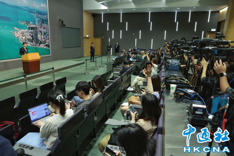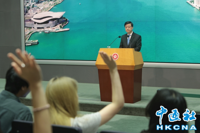 (香港中通社記者 謝光磊 攝) 香港中通社圖片 另一項惠港措施是7月10日起,非中國籍港澳永居人員可申辦來往內地通行證。李家超形容這是政策上的突破,新措施鞏固並提升香港的獨特地位和優勢。