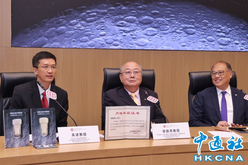 (香港中通社記者 曹文毓攝) 香港中通社圖片 香港理工大學深空探測研究中心副主任吳波教授指出,理大獲分配的逾400毫克月壤,非常珍貴,是國家贈予的禮物。