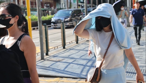 香港市民在酷熱天氣下出行。(香港中通社記者 謝光磊 攝) 香港街頭烈日炎炎,走在街邊的市民遊客基本都手持太陽傘或戴墨鏡,不少市民攜帶迷你風扇降溫。或因酷熱影響,市民大多步履匆匆,以避烈陽。有市民形容,天氣熱得好似“蒸桑拿”,剛出空調房,汗水就“唰”地流了下來。 香港特區政府新聞處發出特別報告,提醒在戶外活動或工作的市民,最好戴寬邊帽,穿淺色、寬鬆的衣服,盡量留在蔭涼處。特區政府衞生署衞生防護中心發言人指,嬰兒及小童、長者、孕婦、長期病如心臟病或高血壓患者、戶外/體力勞動者和過胖人士均較易中暑,應特別注意。 展望未來數日,香港部分時間有陽光及酷熱,亦有幾陣驟雨。副熱帶高壓脊會在周末期間至下周初稍為減弱,華南沿岸有幾陣驟雨,但天氣仍然酷熱。(完) 【編輯:李冉】