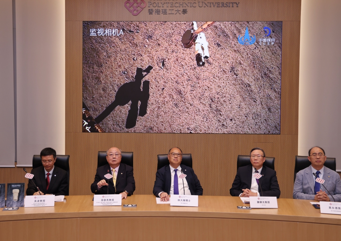 7月3日,理大舉行發布會,介紹理大校園內的月壤長期儲存及多角度原位分析設備,分享即將開展的月壤深入分析研究計劃(“月壤中找水”)。香港理工大學科研團隊研製“表取採樣執行裝置”,為國家嫦娥六號完成史上首次在月球背面表土採樣的創舉,嫦娥六號並於6月25日返回地球著陸,取得圓滿成功。理大最近並通過國家航天局探月與航天工程中心月球樣品管理辦公室的審核,成功獲得由中國嫦娥五號採集的月球土壤樣品,包括一份表取樣品及一份深層鑽取樣品。其中,月壤表取樣品亦是由理大團隊的“表取採樣執行裝置”採集而成。(香港中通社記者 曹文毓攝)