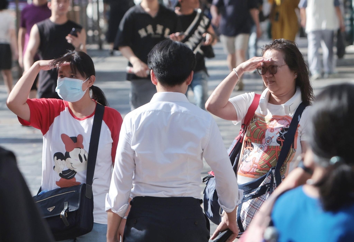 7月5日,香港天文台發出特別天氣提示,提醒天氣極端酷熱,高溫天氣持續。當日下午天文台錄得最高34.6度,再破今年最熱紀錄。(香港中通社記者 謝光磊 攝)