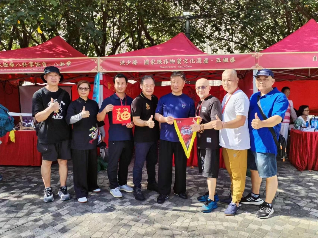 香港新聞網7月14日電(記者許其皓)7月13日,在香港文化中心“武林盛舞嘉年華”功夫一條街上,國家級非物質遺產“五祖拳”宣傳攤位迎來眾多武術愛好者和功夫師傅交流分享。福建省近代五祖拳武術體系如今已盛行東南亞等地,成為維系海外華人鄉情的重要紐帶。 香港“武林盛舞嘉年華” 由7月9日至14日一連6日在香港文化中心舉行。是全港首個武術與舞蹈相匯的文化藝術嘉年華,亦是第二屆“香港流行文化節”的推介節目之一。獲特區政府“文化藝術盛事基金”資助,以武舞共融為主題,雲集國內外逾千名武術及舞蹈界各路精英高手,有超過60場表演及教育活動。其中深受遊客歡迎拍照打卡的“功夫一條街”長達80米,將以尖沙咀鐘樓為起點,特色屏風築成一條“中國風”街道。中國武術能夠讓海內外人士廣泛認識,離不開香港功夫電影和電視劇的宣傳作用,所以功夫街的構思是要讓大眾首先從香港武俠影視文化開始,進而探索功夫街內的各種香港武林文化故事。功夫街各門各派名家向觀眾講解門派特色,介紹武術文化,讓市民和遊客瞭解香港武林對文化傳承的貢獻 : 香港不但是國際金融中心,同時也是中外文化交流中心。在上個世紀,我們的武術前輩在香港默默推廣很多的傳統武術文化,然後再由香港傳播到世界各地,因此也吸引了很多外國人來港學習交流,讓中國武術走向國際化,香港扮演著非常重要的角色。