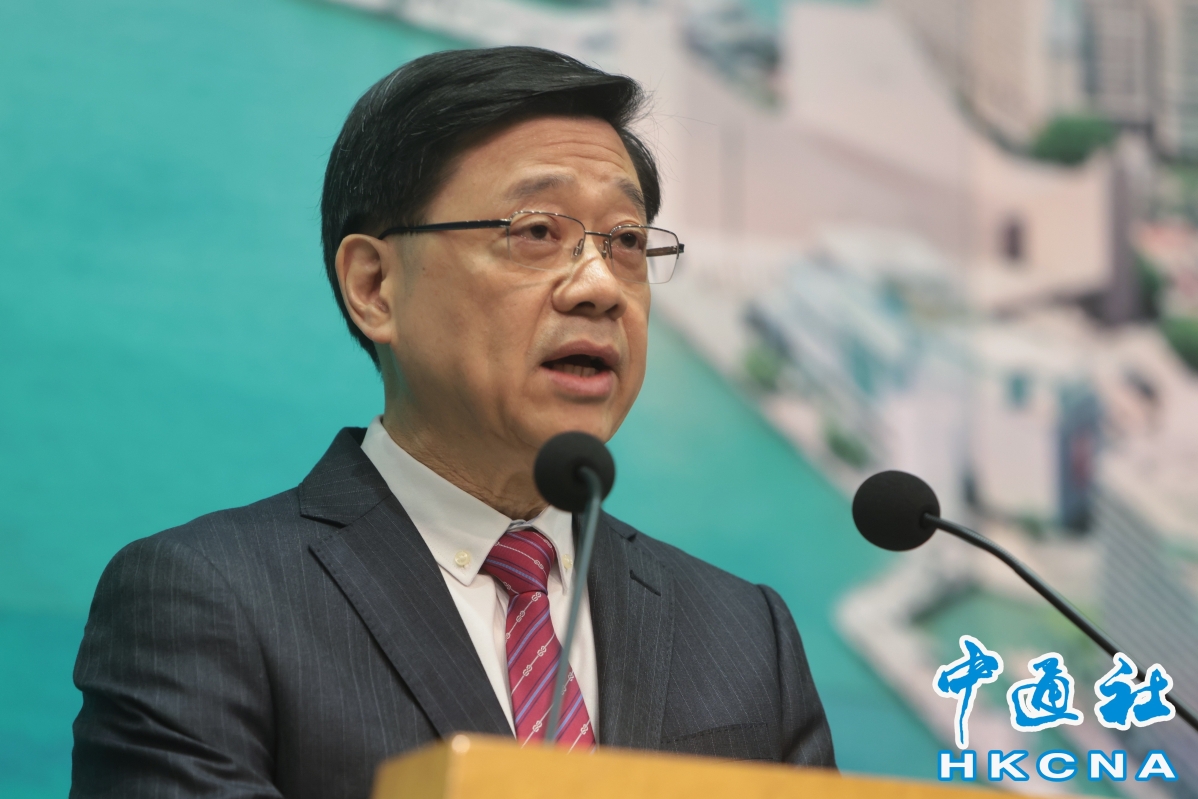 香港特區行政長官李家超今日出席行政會議前見記者。(記者 謝光磊 攝)