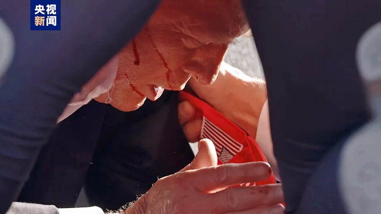 7月13日晚18時,美國前總統特朗普在賓夕法尼亞州巴特勒縣舉行的競選集會活動時遭到槍擊,面部流血。央視新聞圖 目前,至少在目前,在很多人眼中,特朗普重回白宮幾乎是板上釘釘的事了。所以,當昨日(7月16日),彭博社旗下《彭博商業周刊》發佈了一篇對特朗普的專訪報道(於6月25日采訪)後,他的一些觀點立刻在世界各地掀起了不小的風波。比如,特朗普表示,由於美國全部的芯片業務“被搶奪”,且沒有得到任何好處,台灣方面應當向其支付“防務費用”。此言一出,立刻導致台灣芯片製造商的股價於當地時間7月17日盤中應聲大跌超過2%。