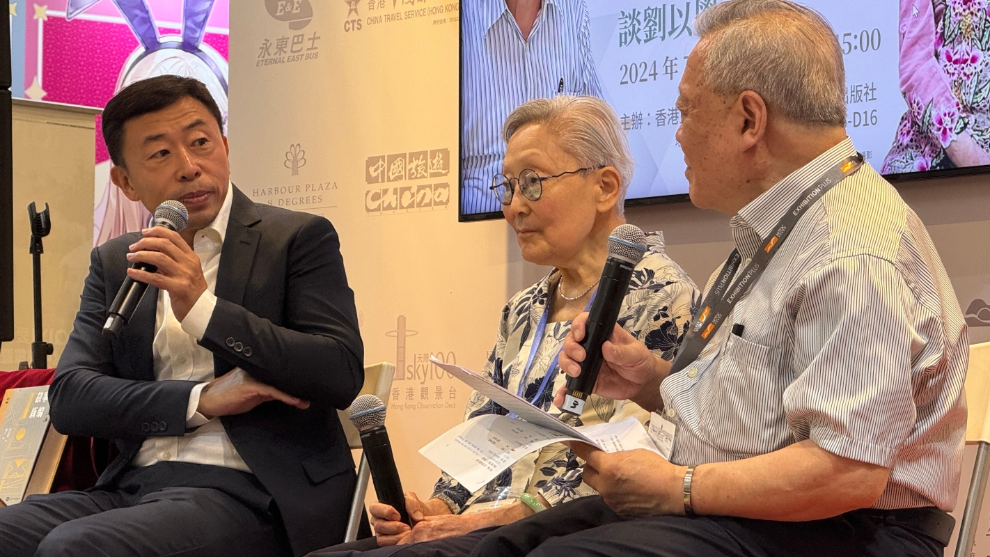 香港文學總編輯游江(左起)和羅佩雲、梅子出席“梅子、羅佩雲談劉以鬯講座”(武仲林攝)