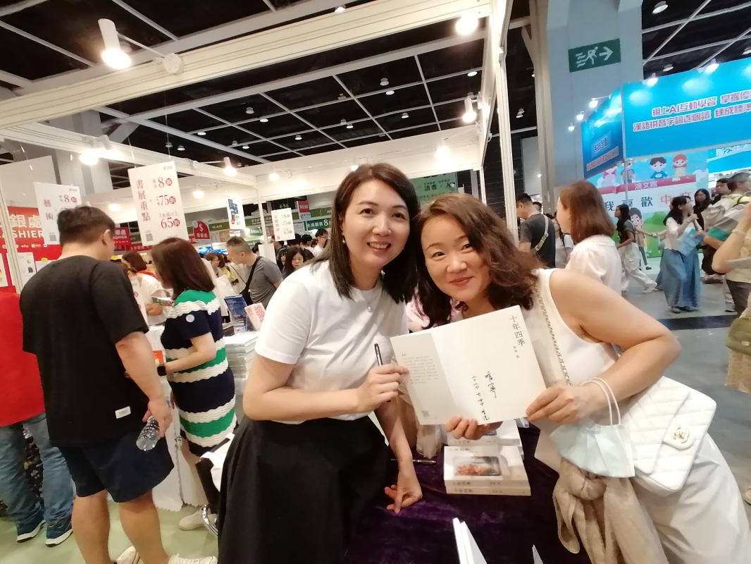 作家香寧在《十年四季》作家簽售會上為讀者簽名