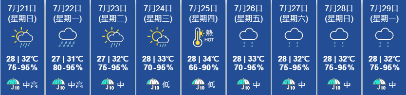 未來9天天氣預報。香港天文台網站截圖 香港天文台預計,位於南海中部的熱帶氣旋會在今明兩天(21日-22日)大致移向海南島一帶並稍為增強,與其相關的狂風驟雨及雷暴會在本週初影響廣東沿岸,該區風勢較大。此外,熱帶氣旋格美會在未來數日大致移向台灣附近海域並顯著增強,受其外圍下沉氣流影響,廣東地區本週中期天氣酷熱,亦有幾陣驟雨。預料一股西南氣流會在本週後期影響華南沿岸,為該區帶來不穩定天氣。(完) 【編輯:豐悅】