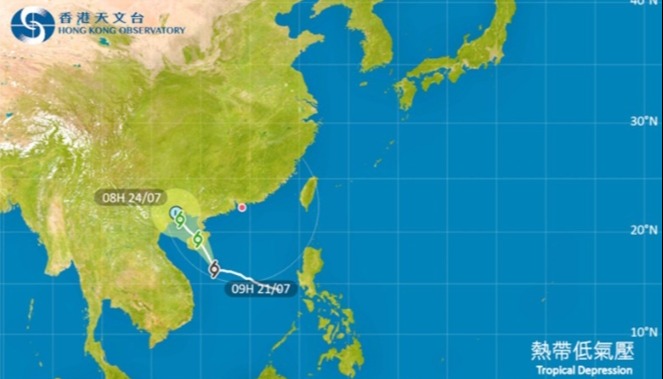 熱帶風暴派比安的影響已經接近尾聲。香港天文台圖 位於中國南海北部的熱帶低氣壓周日(21日)中午增強為熱帶風暴並命名為派比安。香港天文台上午指,派比安對香港的影響已經接近尾聲,但受派比安的外圍環流影響,本港今日初時離岸及高地間中吹強風,一號戒備信號會至少維持至中午12時。天文台提醒,今日香港周邊海面有湧浪,市民請遠離岸邊及停止所有水上活動,並留意最新天氣消息。 香港天文台預報,今天(22日)天氣大致多雲,有幾陣狂風驟雨及雷暴。日間短暫時間有陽光,最高氣溫約32度。吹和緩至清勁東至東南風,初時離岸及高地間中吹強風。海有湧浪。未來兩三日部分時間有陽光及酷熱,亦有幾陣驟雨。