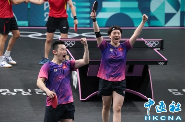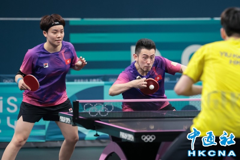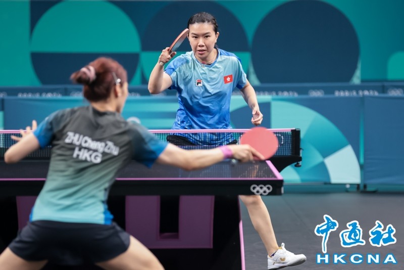 圖為中國香港乒乓球隊隊員杜凱琹、黃鎮廷在訓練中。(香港中通社記者 謝光磊 攝) 黃鎮廷接受記者採訪時表示,三年來與杜凱琹的默契和溝通效率都有提升,今屆反而沒有上屆壓力大,心態更好,希望首場比賽可以發揮到應有水平。 女子團體項目在上屆東京奧運拿下銅牌。李皓晴指出,這兩天會加緊時間適應,三年時間好快,再次來到奧運賽場很興奮。她說奧運是一個充滿奇跡和爆冷的舞台,太緊張反而發揮不到最好水平。