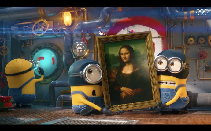 小黃人和蒙娜麗莎夢幻聯動 開幕式還上演了《蒙娜麗莎》被盜:火炬手還在盧浮宮,忽然之間,他發現《蒙娜麗莎》不見了。原來。是小黃人盜走了《蒙娜麗莎》,這是小黃人和蒙娜麗莎的夢幻聯動,展示了法式幽默。