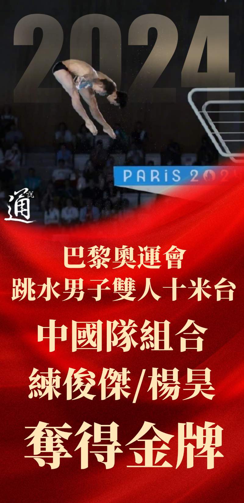 (巴黎奧運)第四金!中國隊組合練俊傑/楊昊奪得跳水男子雙人十米台冠軍