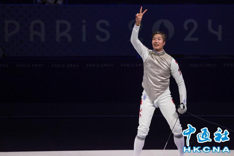 當地時間7月29日,張家朗奪冠後揮舞拳頭慶祝。當日,在巴黎奧運會擊劍項目男子個人花劍決賽中,中國香港選手張家朗15比14戰勝意大利選手菲利波·馬基,奪得冠軍。這是中國香港隊本屆奧運會的第二金。(香港中通社記者 謝光磊 攝) 香港中通社圖片 張家朗在決賽首節11:10領先,進入第二節與馬基鬥到12平手,之後馬基接連取分,領先14:12,只差一分就勝出。張家朗再次絕地反擊,主動搶攻追平比數。 決勝分的爭奪非常激烈,裁判兩度判定雙方同時出劍,張家朗一度脫下面罩慶祝後亦要繼續比賽,最終在近戰時有效得分,成為決賽勝方及首名連續在兩屆奧運奪金的港隊代表。 這面金牌是香港史上第四面奧運金牌,而香港劍隊以至中國香港代表團在單一屆奧運取得兩面金牌,都是港隊歷來首次。